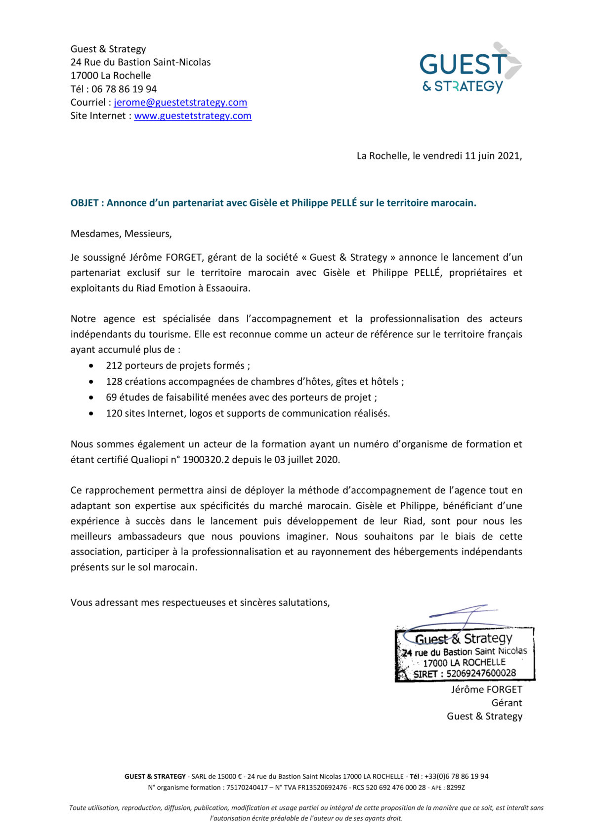 La société Boutique Hôtel Conseil exploitant le riad émotion à Essaouira développe son activité de conseil en accompagnement & en développement d’hébergement touristique au Maroc en actant un partenariat exclusif avec Guest Stratégy leader en France depuis 10 ans dans la profesionalisation du métier d’hébergement touristique.